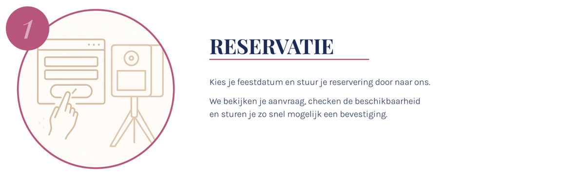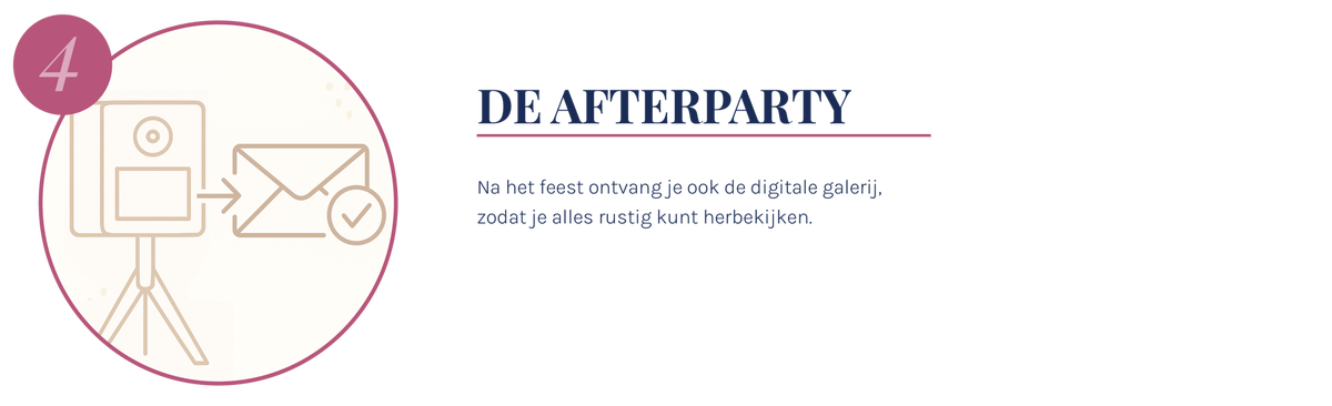 * Midnight Moments optie: voor de mooiste herinneringen van de late uurtjes. Geniet van de photobooth tot na middernacht voor een meerprijs van 50 euro.